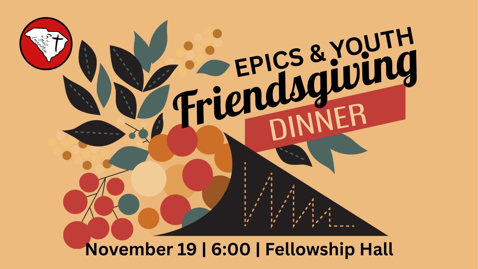 The youth have invited EPICS to Friendsgiving on Wednesday, November 19, beginning at 6:00. Please sign up at the Welcome Center!